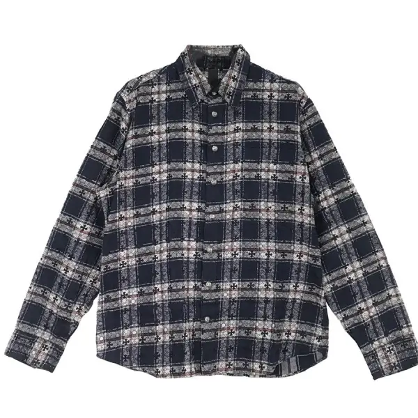 Chrome Hearts Blue&Black Monogram Cross Patch Flannel Shirt