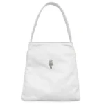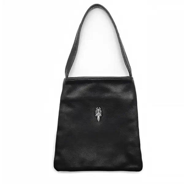 Expertly crafted from premium leather, the handbag features a smooth, structured finish that maintains its shape while offering durability for regular use. The standout design element is the signature Dracula dagger hardware, a symbol deeply rooted in Chrome Hearts’ heritage. Finished in polished metal, the dagger accent serves as a dramatic focal point, adding depth and attitude to the soft pink exterior.