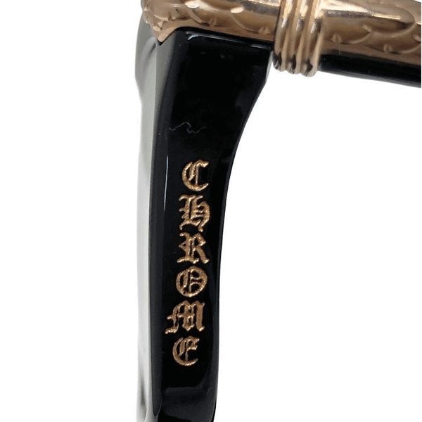 Its balance of minimal black acetate with bold Chrome Hearts gothic detailing makes it stand out as both stylish and timeless.