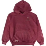 Constructed from premium heavyweight 100% cotton, this hoodie offers a soft, structured fit that combines comfort and craftsmanship. The washed red hand-dyed finish gives each piece a unique, one-of-one look, with subtle tonal variations that highlight its artisanal production. The front and back are adorned with Chrome Hearts Clothing UK cross motifs and Drake’s Certified Lover Boy-inspired branding, seamlessly blending both identities into one bold statement.